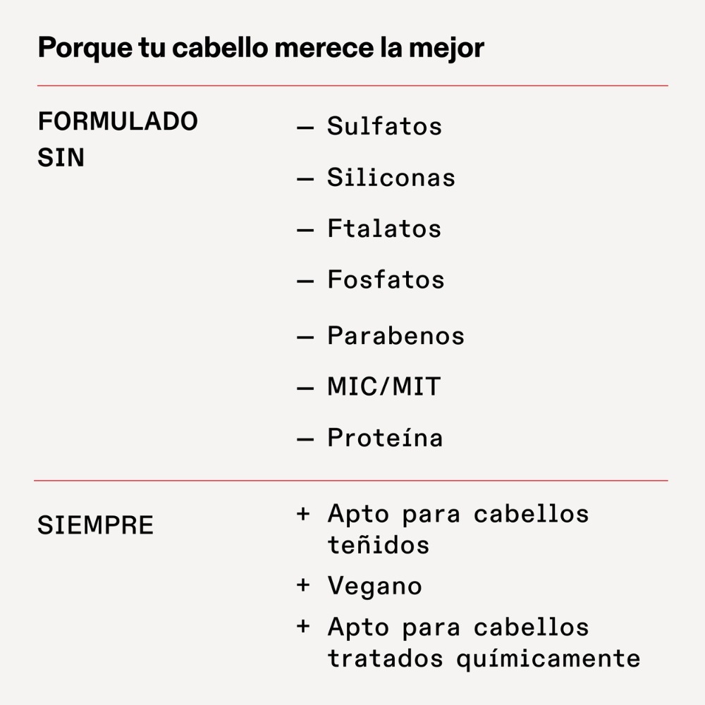 💦 Textura Súper Rica: Su fórmula es más densa y concentrada. Es una inyección directa de hidratación intensa que elimina el frizz, desenreda y suaviza al instante.
